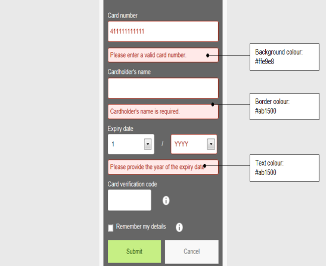 URL for redirection in the event of error Format: AN, 255 Mandatory |